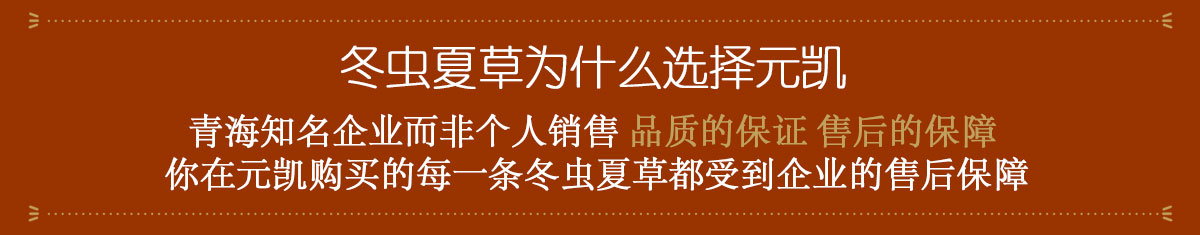 公司專業(yè)致力于青藏高原野生冬蟲夏草銷售、采收、精選包裝和現(xiàn)代化生產(chǎn)、研發(fā)等,并且在青海玉樹西藏那曲設(shè)立了采購站,專門采購地道的野生冬蟲夏草,充分保證了產(chǎn)品的品質(zhì)。元?jiǎng)P長期向國內(nèi)眾多著名藥材經(jīng)銷商、港澳臺(tái)以及東南亞中藥材采購商供應(yīng)冬蟲夏草,多次被省、市、縣授予多種榮譽(yù)稱號(hào)“青海省知名商標(biāo)”、“青海省誠信單位”、“青海省名優(yōu)企業(yè)”、“守合同重信用企業(yè)”等。